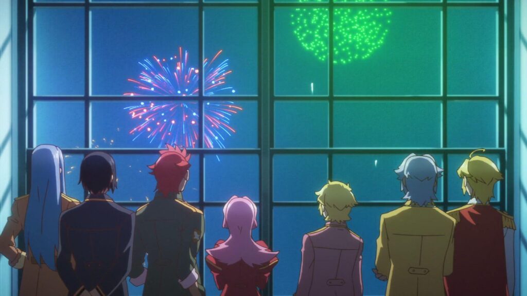 anna is meant to watch the fireworks with the person who glowed most for her in game in the anime however, naturally it’s grace, so ken decided to hide away so that anna would get together with one of the boys instead despite this, anna still chases after her to find her, her head entirely full of the moments they shared together this entire time I BELIEVE IN THE YURI ROUTE